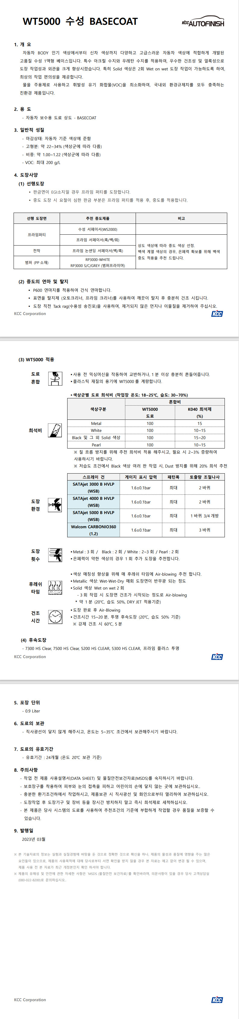 KCC WT5000 베이스코트 기아 SWP(바탕)-70 스노우화이트펄 0.9L