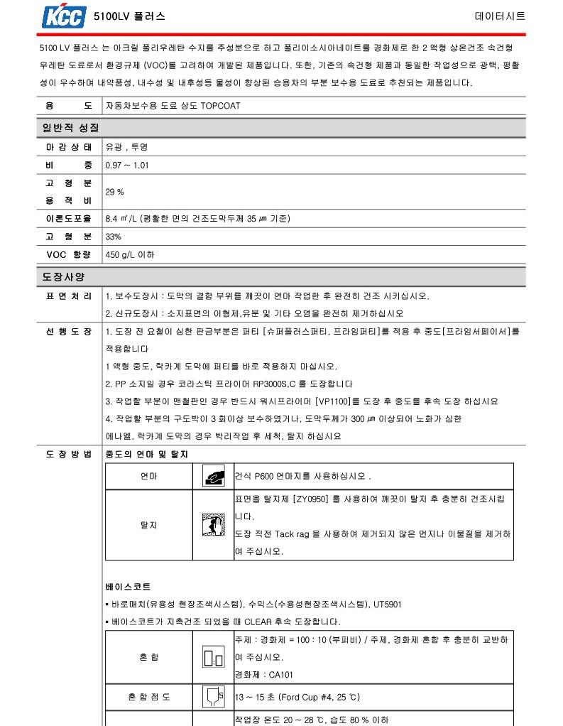 KCC 5100 LV 플러스 속건형 크리어 4L(주제+경화제) 상온건조형 10:1 투명