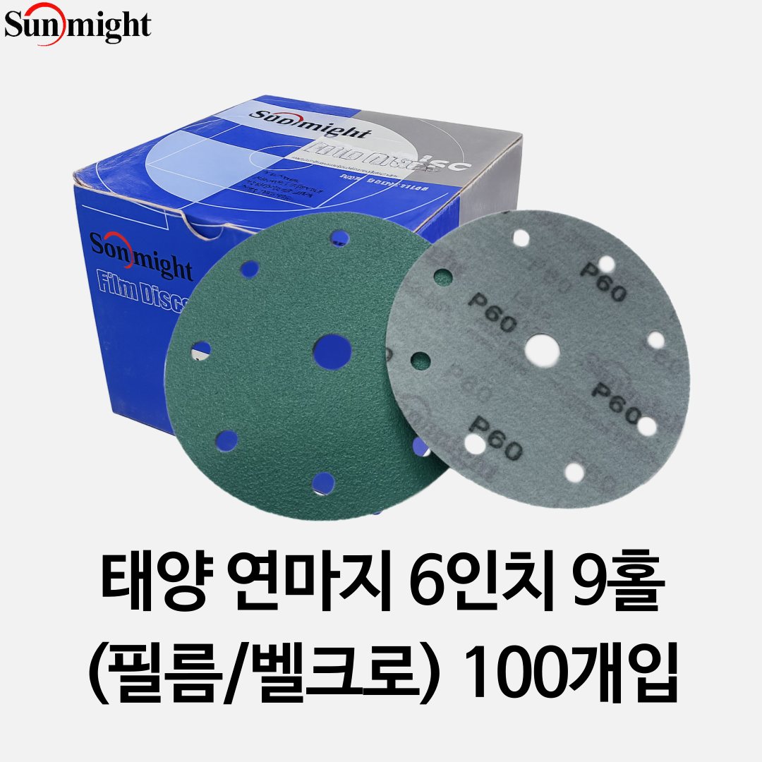 태양 연마지 6인치 9홀 100장(필름/벨크로) 빼빠 원형 사포