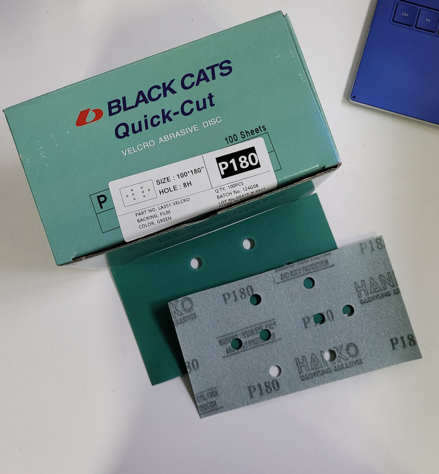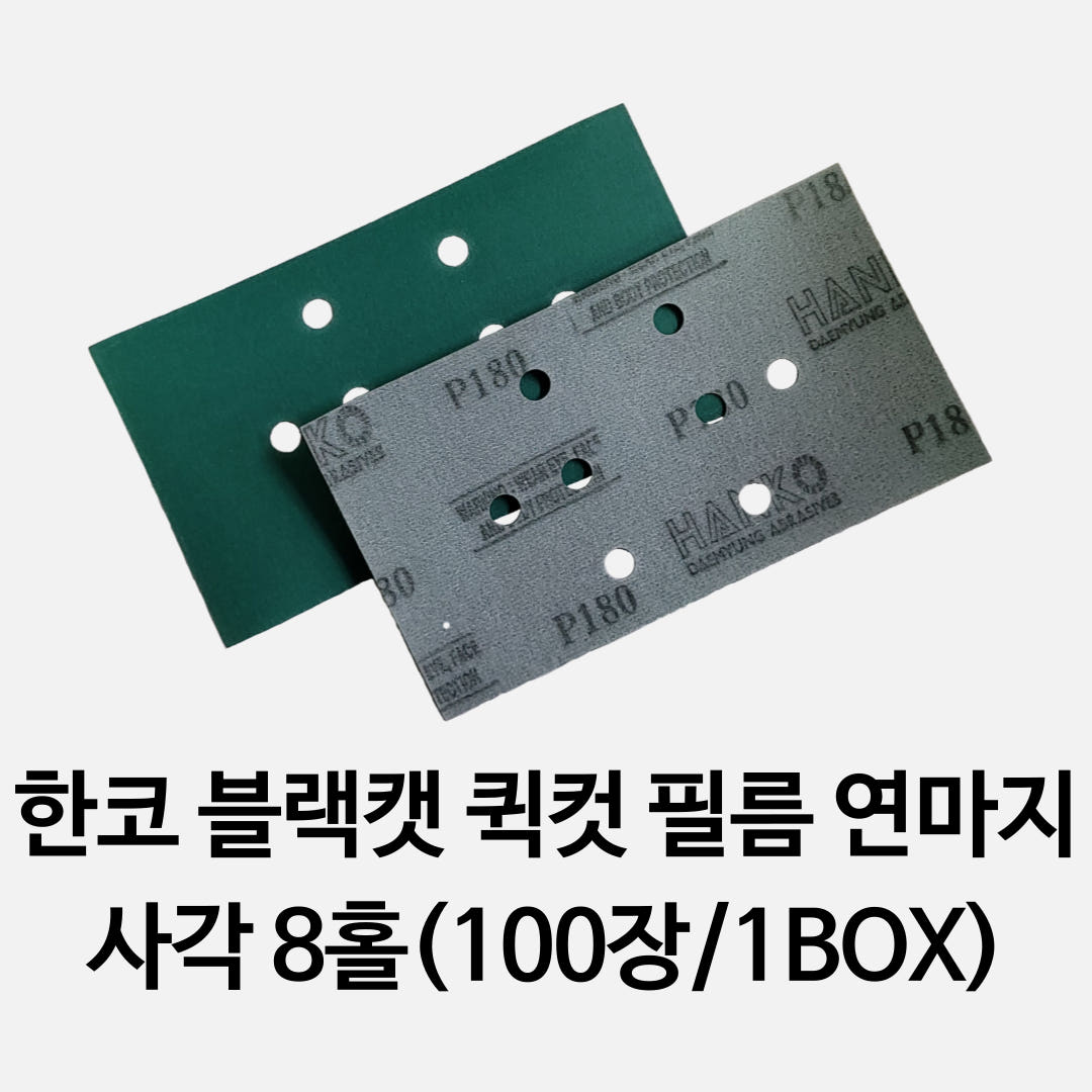 대명(한코) 블랙캣 퀵컷 필름 연마지 사각 8홀(100장/1BOX)