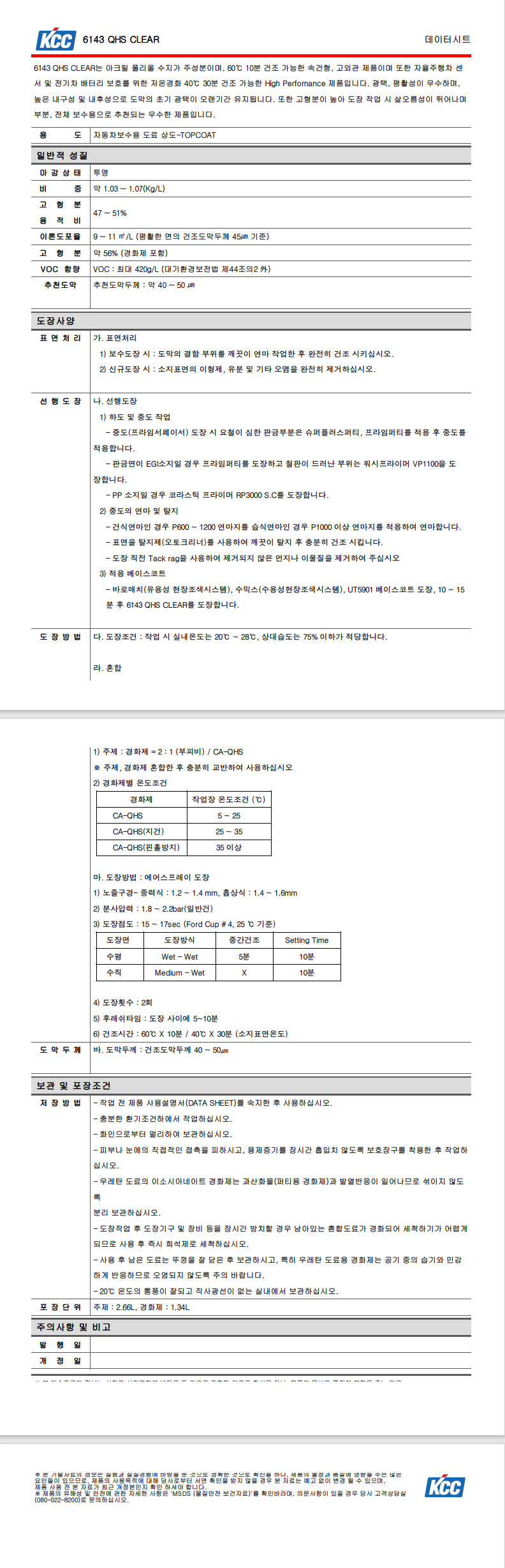 [ 제품규격 ] - 주제 : 2.66 L - 경화제(CA-QHS) : 1.34 L