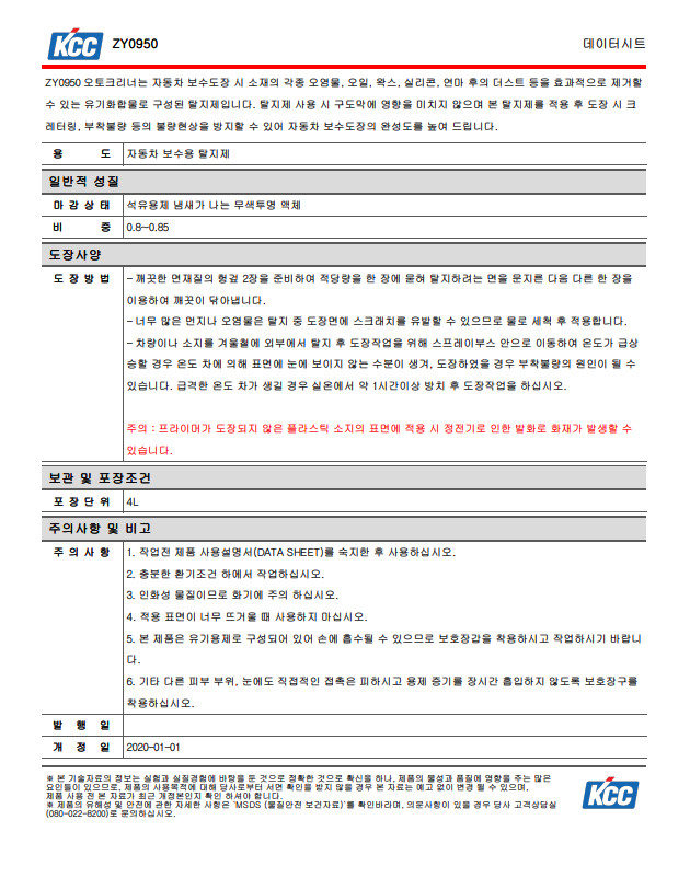 각종 오염물, 오일, 왁스, 실리콘등 제거 목적 유용성 탈지제