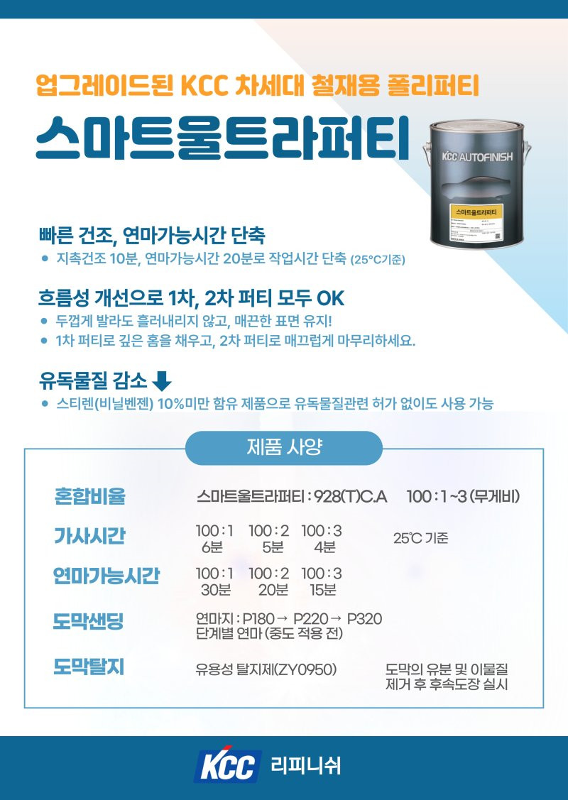 KCC 스마트 울트라 퍼티 3L(주제+경화제) 철재용 폴리퍼티