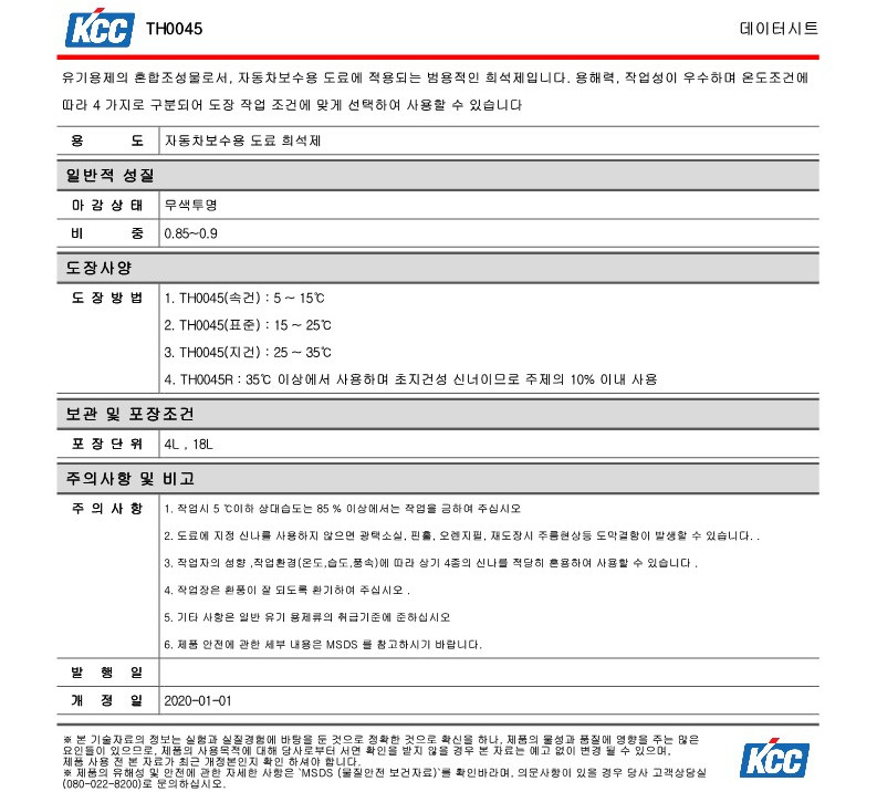 - TH0045R : 초지건 리타더 신너, 35℃ 이상시 블랜딩시 사용