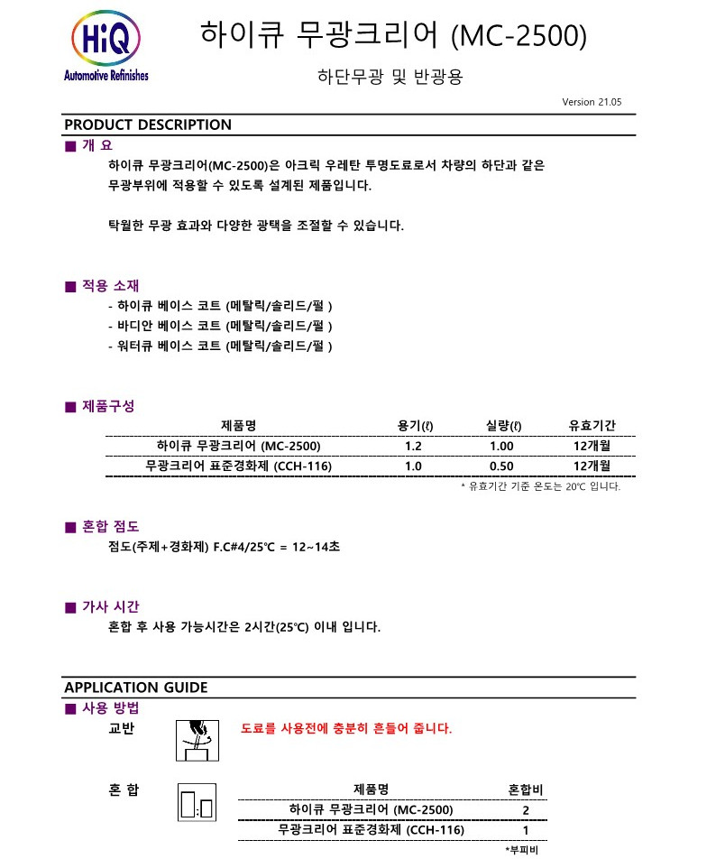 노루 하이큐 무광크리어 MC-2500 1.5L (주제+경화제)