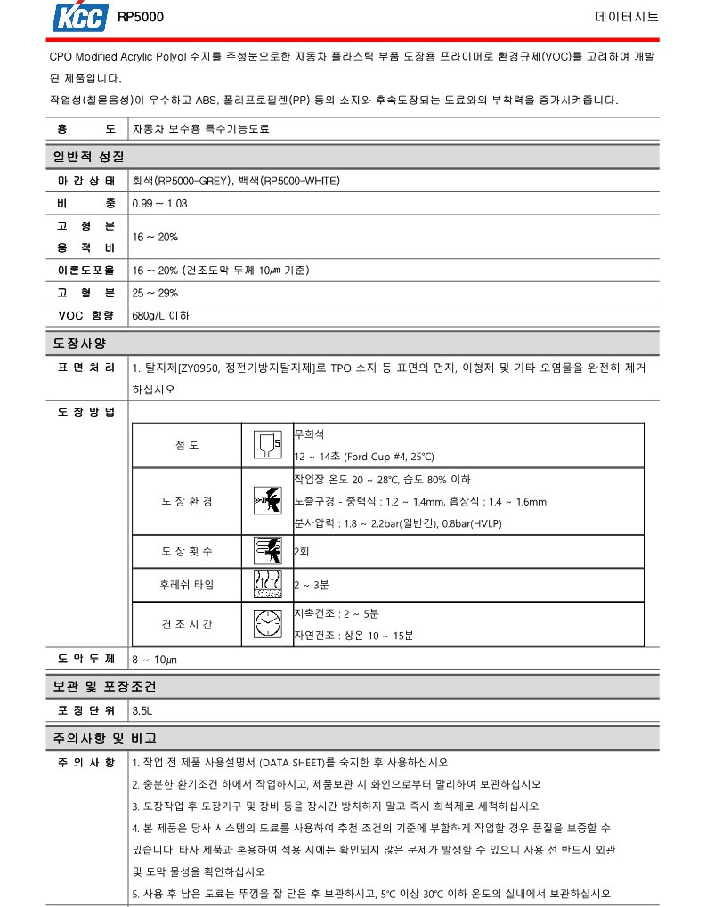 KCC RP5000 GREY 범퍼프라이머 3.5L / 1액형 PP 플라스틱 프라이머