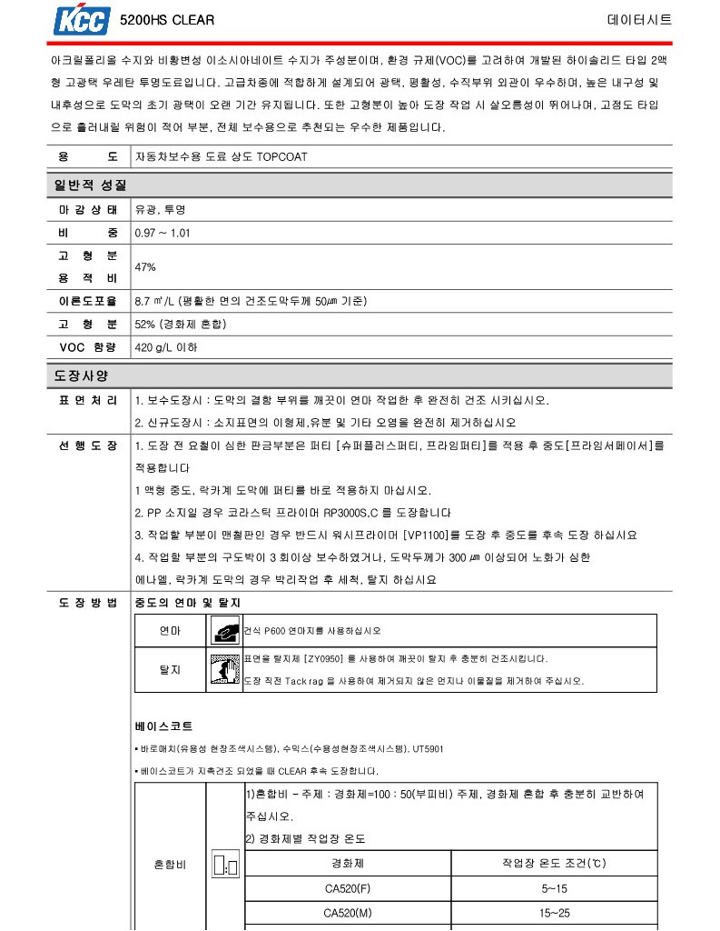 KCC 5200 HS CLEAR 투명 2.66L(주제만)