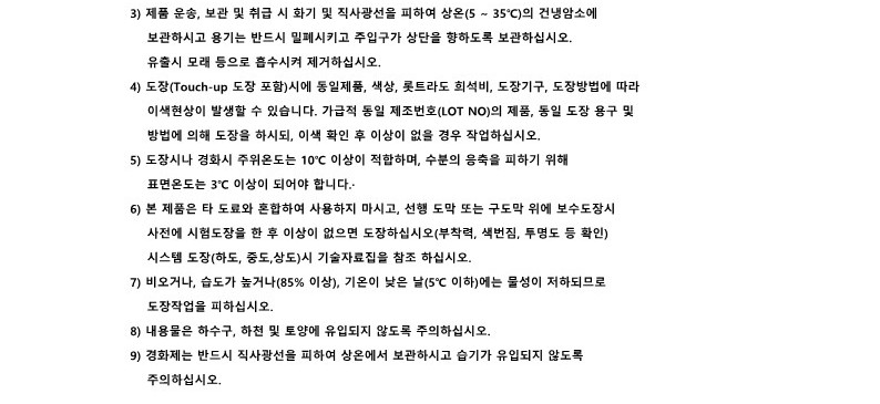 - 아이삭 스토어는 자동차 보수용 페인트 및 부자재 전문 대리점으로, 제품의 성분 및 품질 보증 책임은 제조사에 있습니다. 당사에서 판매하는 제품은 제조사의 규격에 따라 공급되며, 사용자의 부주의 또는 임의 사용으로 발생한 문제에 대해서는 책임을 지지 않습니다.
